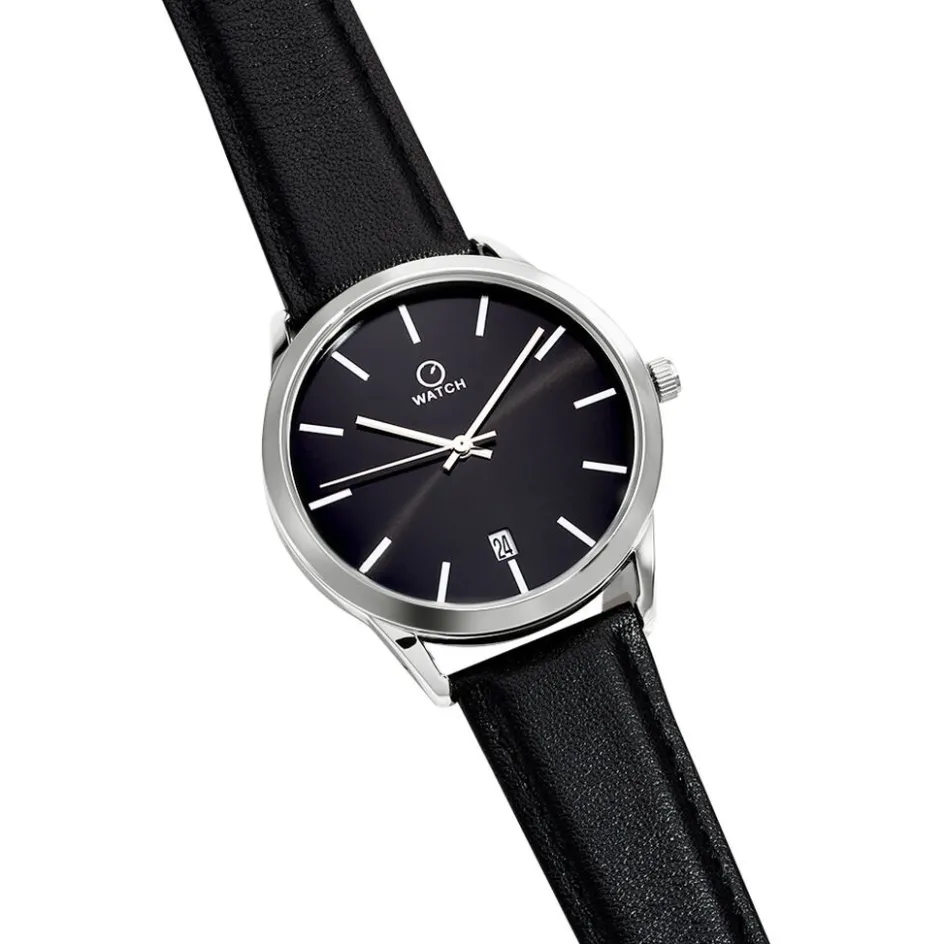 Montre O Watch Chill Alliage Argenté Ronde Quartz 41mm Fond Noir Bracelet Synthétique Noir P100960-h