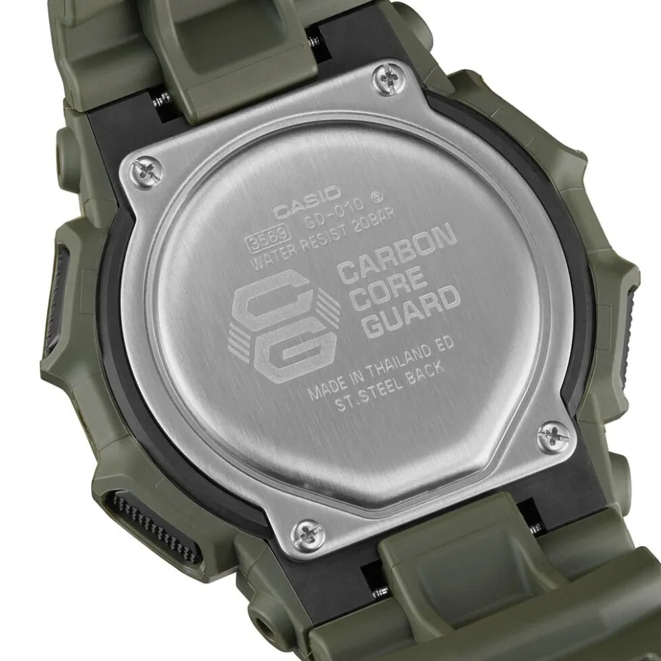 Montre Casio G-shock Résine Vert Ronde Quartz 51.9mm Fond Gris Lunette Plastique Vert Bracelet Résine Vert Gd-010-3er