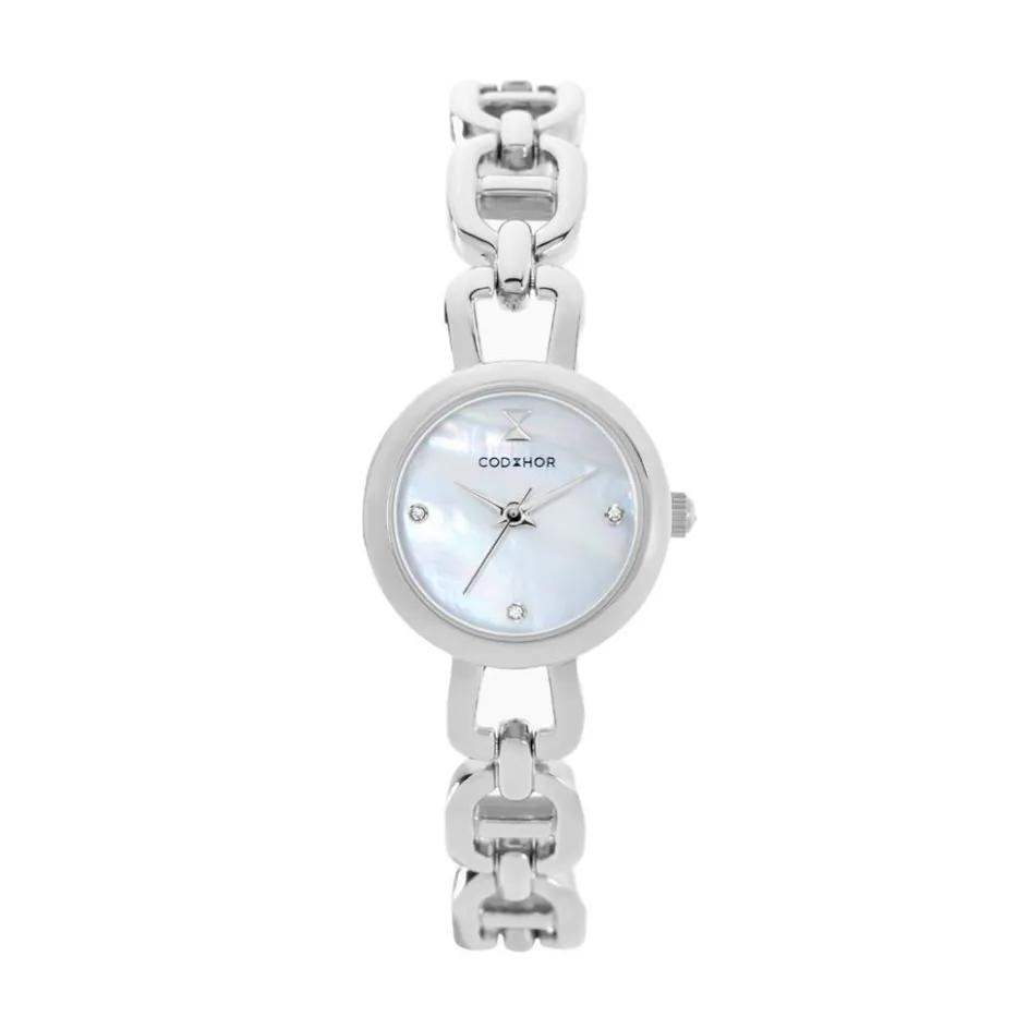 Montre Codhor Leana Alliage Argente Ronde Quartz 23mm Fond Nacre Blanche Bracelet Alliage Argente Ch.5154la/01m