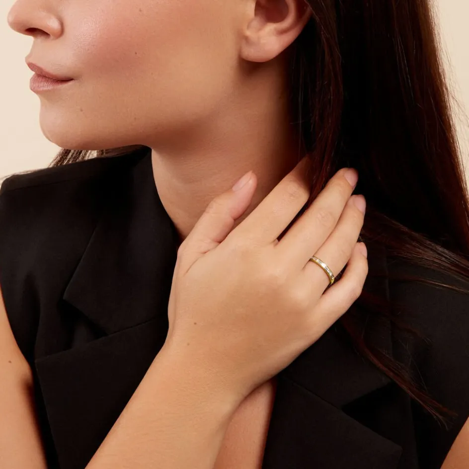 Alliance Or Jaune 375/1000 Diamants Synthetiques Baguettes 0.38cts Sertis Rail