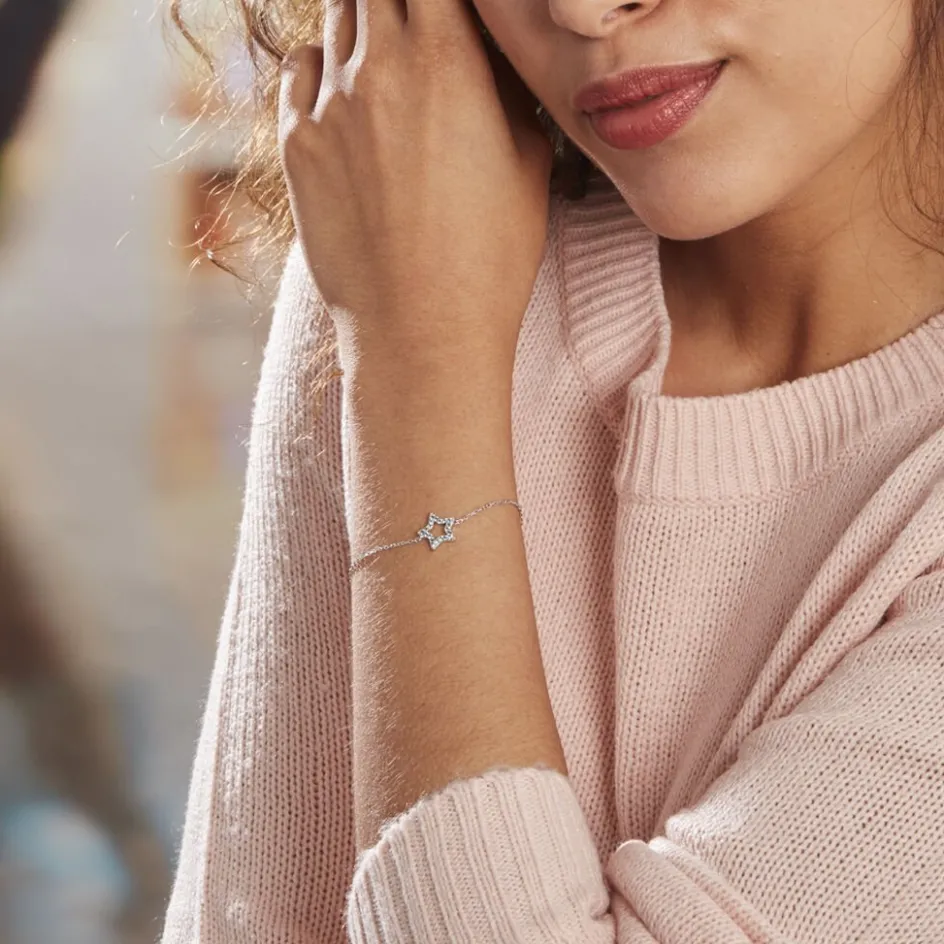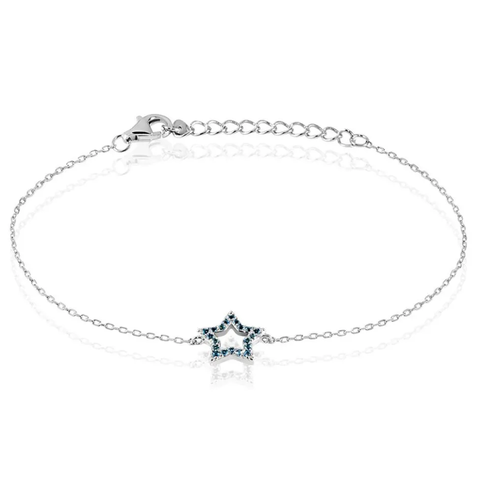 Bracelet Argent 925/1000 dmitri Etoile Micro Setting Oxydes De Zirconium Bleu Ciel Maille Forcat 19.5cm