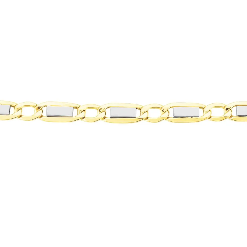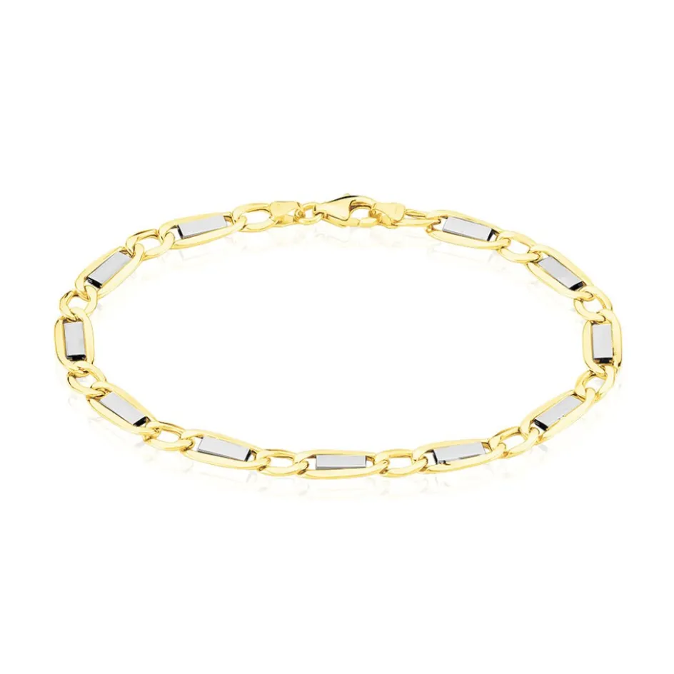Bracelet Or Bicolore 375/1000 Maille Plaquette 5.6mm 19cm