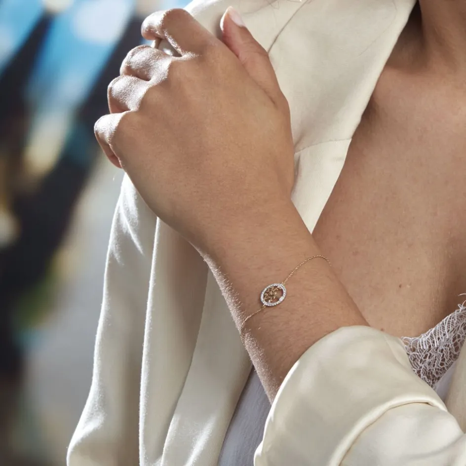 Bracelet Or Jaune 375/1000 Arbre De Vie Micro Pavage Oxydes De Zirconium Maille Forçat 16+2cm