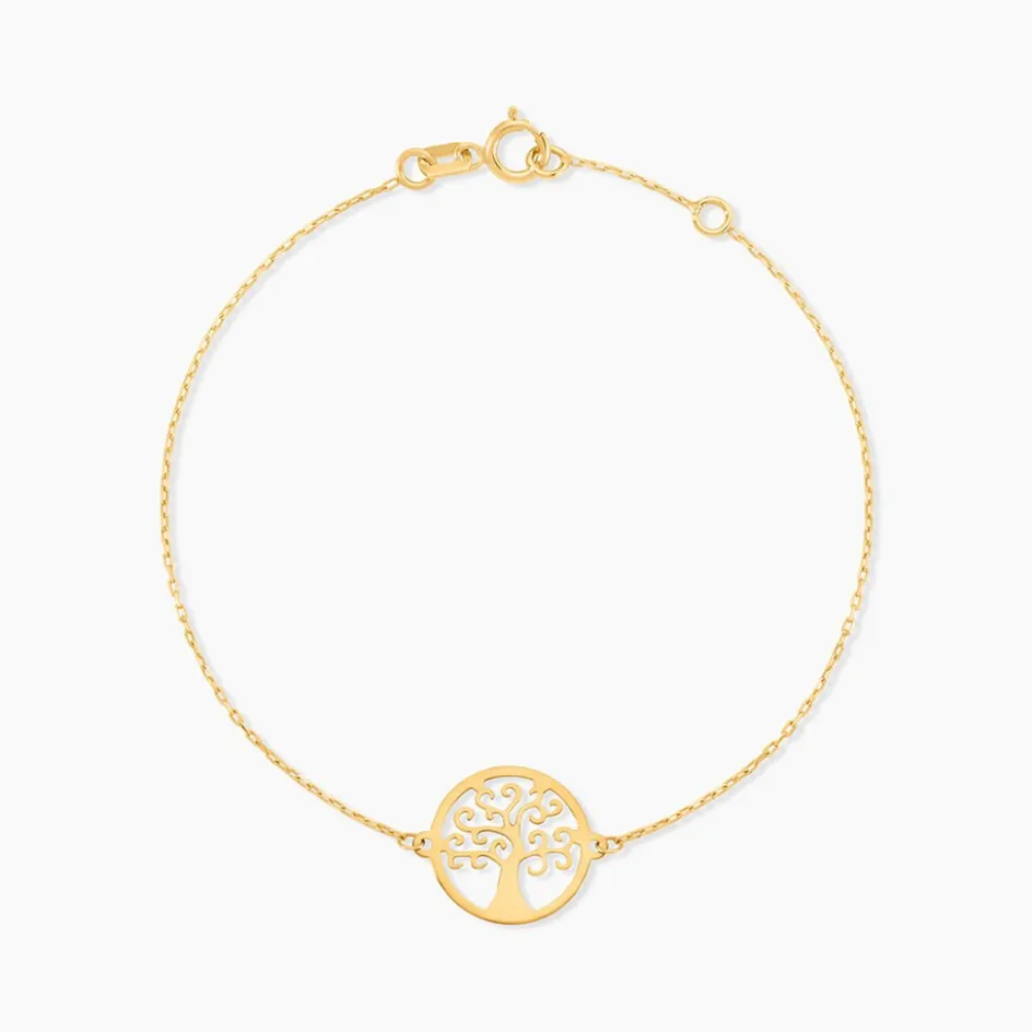Bracelet Or Jaune 375/1000 Arbre De Vie Maille Forcat 16+2Cm