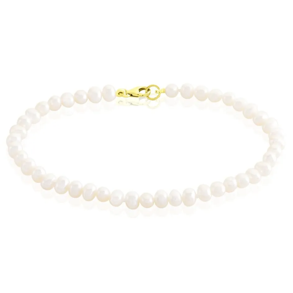 Bracelet Or Jaune 375/1000 Perles De Culture Semi-baroques 3.5/4mm 18cm