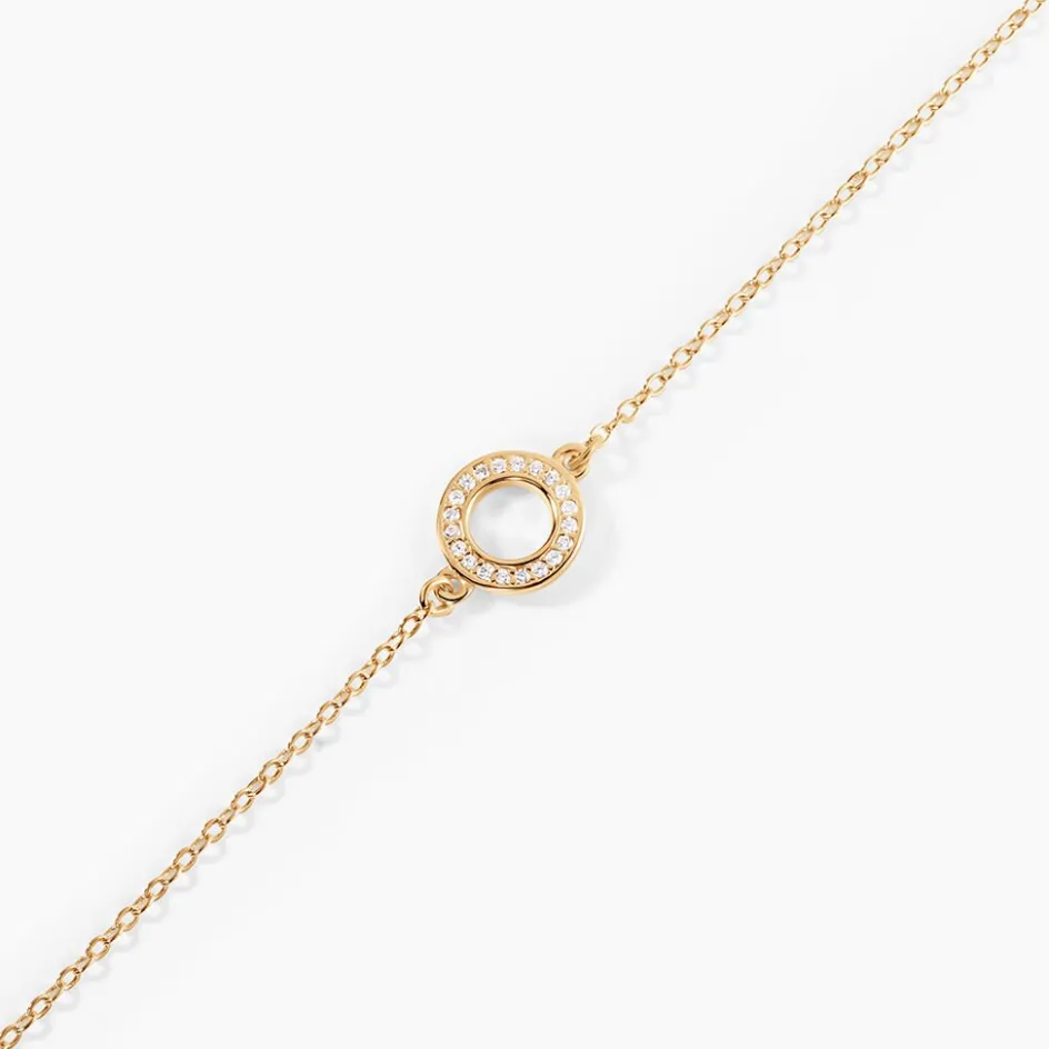 Bracelet Plaqué Or Jaune Cercle Ajoure Serti Griffes Oxydes De Zirconium Maille Forcat 18cm