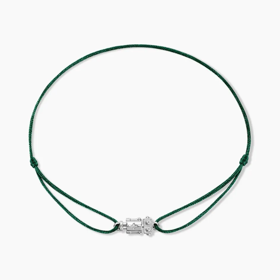 Bracelet Argent Blanc 925/1000 Robot Cordon Ajustable Vert 20cm