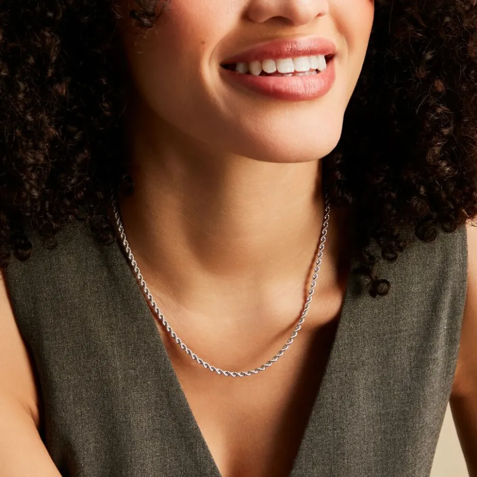 Chaine Or Blanc 375/1000 Maille Corde Largeur 2.7mm 45cm