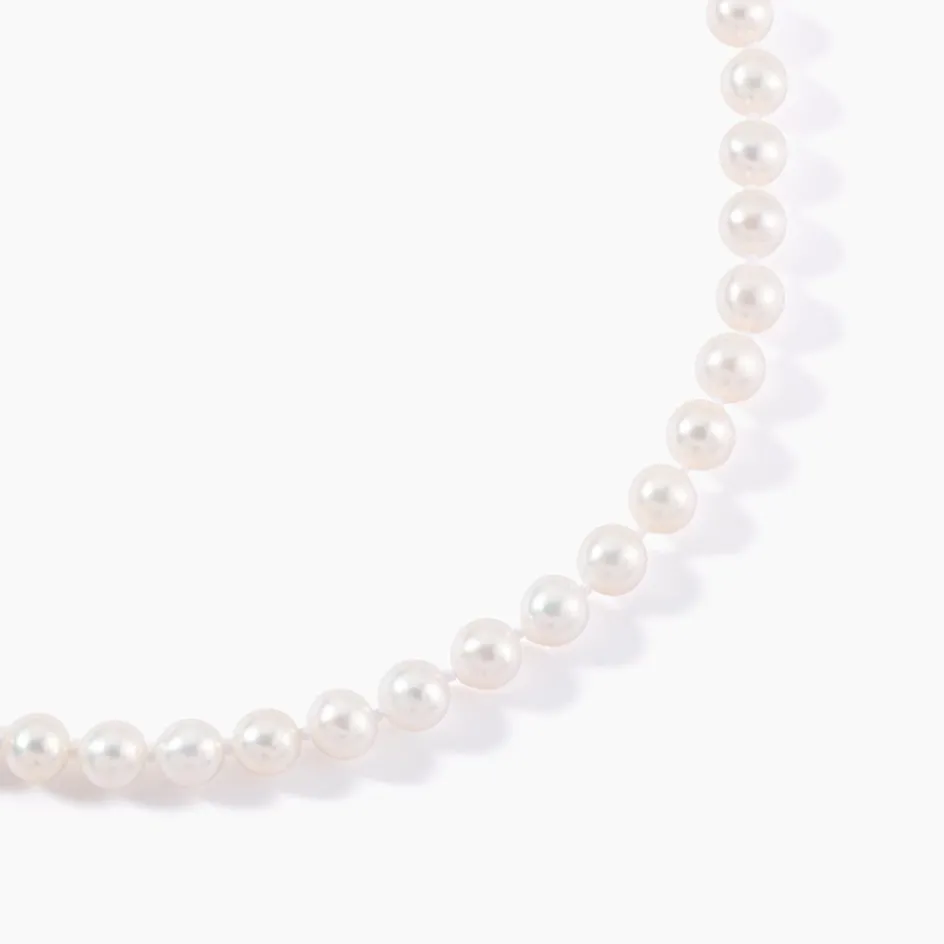 Collier Or Jaune 375/1000 Perles De Culture Akoya 6/6.5mm Ronde Blanche 45cm