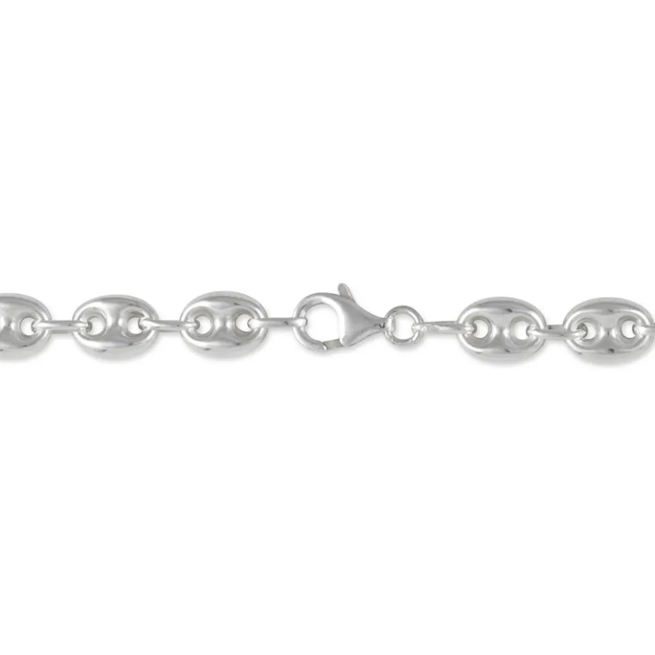 Collier Argent Blanc 925/1000 Maille Grain De Cafe Epaisseur 8mm 55cm
