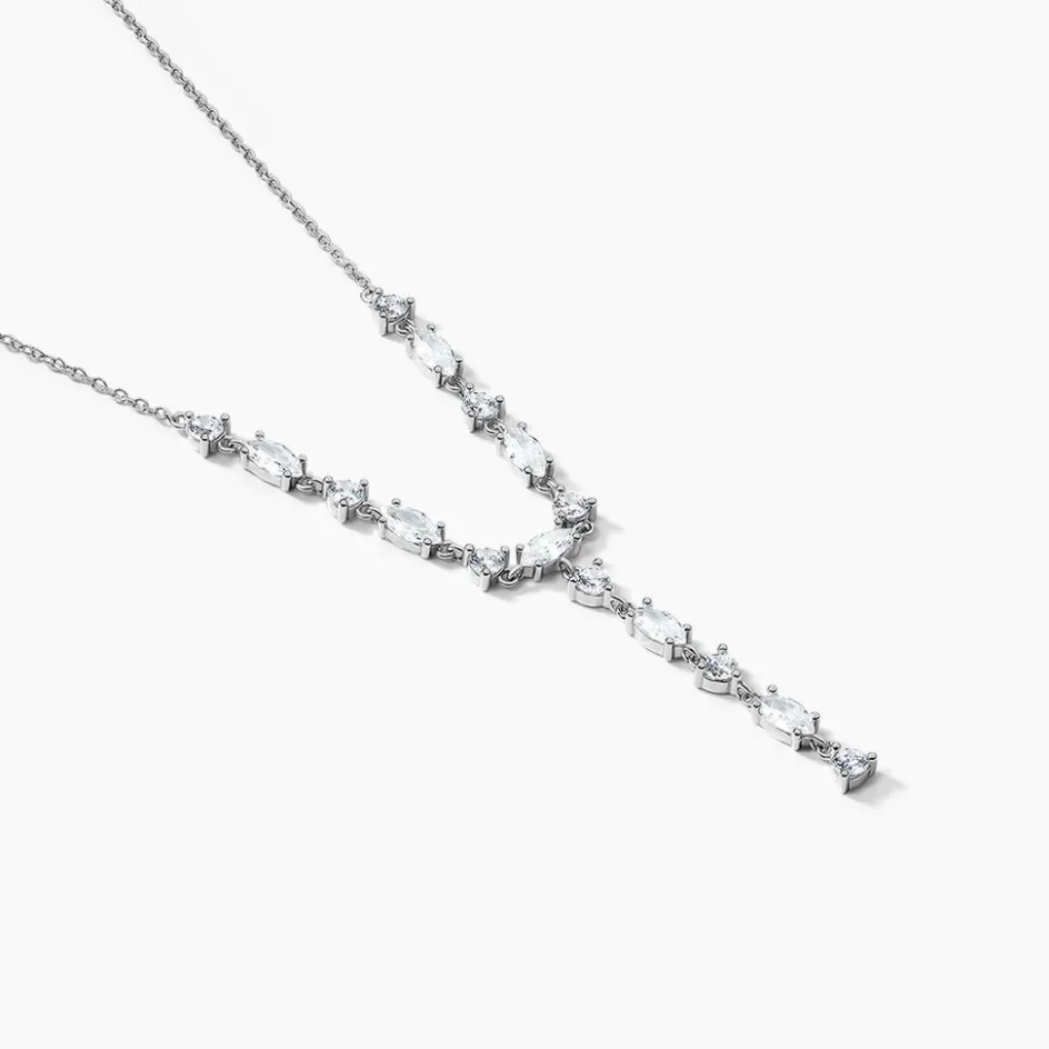 Collier Cravate Argent Blanc 925/1000 Multipierres Navettes Oxydes De Zirconium Maille Forçat 42+3cm