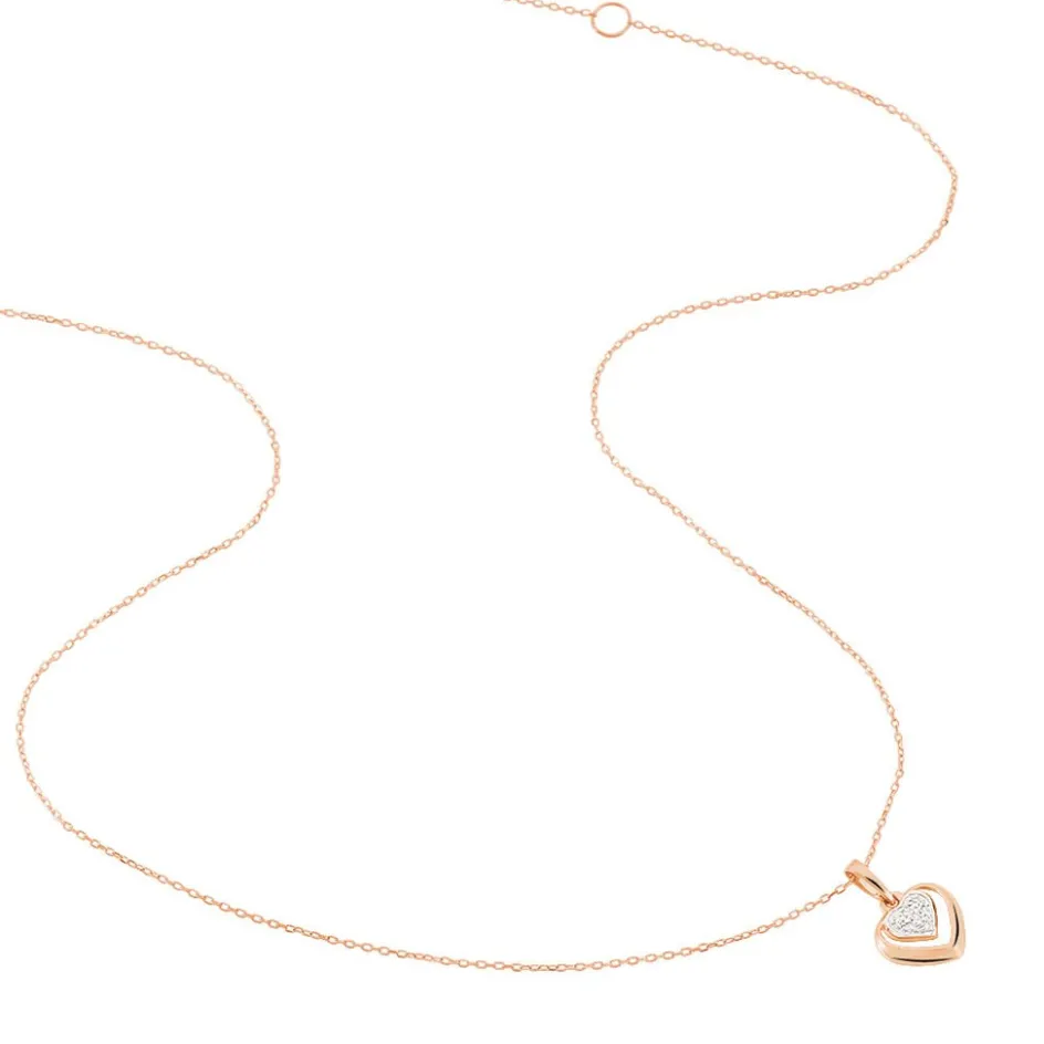 Collier Or Rose 375/1000 Forme C艙ur Ajoure + Semi Pavage Diamants 42cm