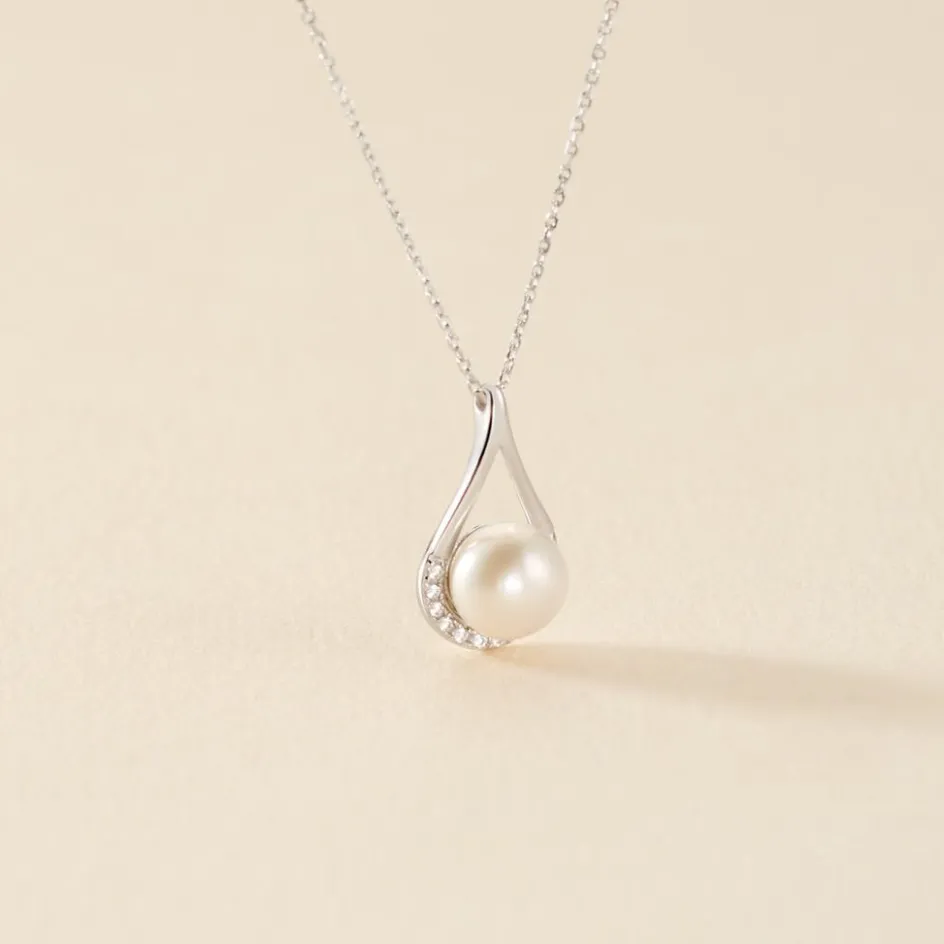 Collier Or Blanc 375/1000 Forme Goutte Perle De Culture 7-7.5mm Et Oxydes De Zirconium Maille Forçat 38+4cm
