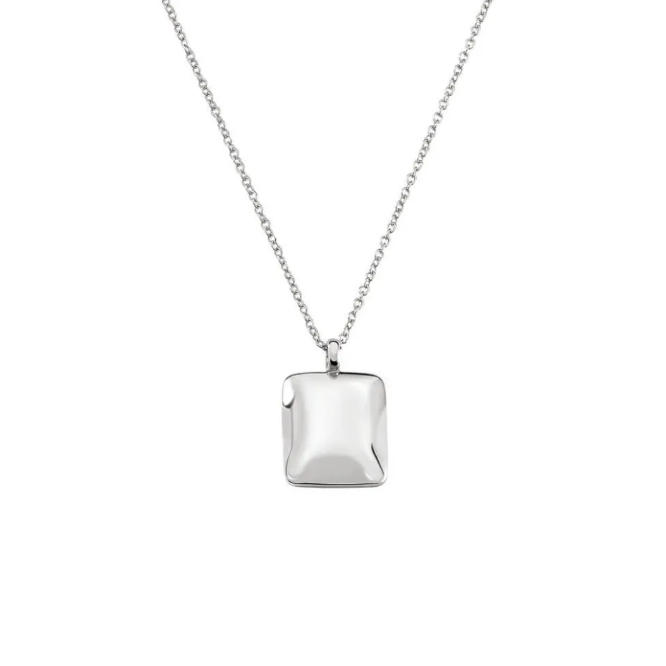 Collier Argent Blanc 925/1000 Motif Carré Effet Facetté Maille Forçat 42+3cm