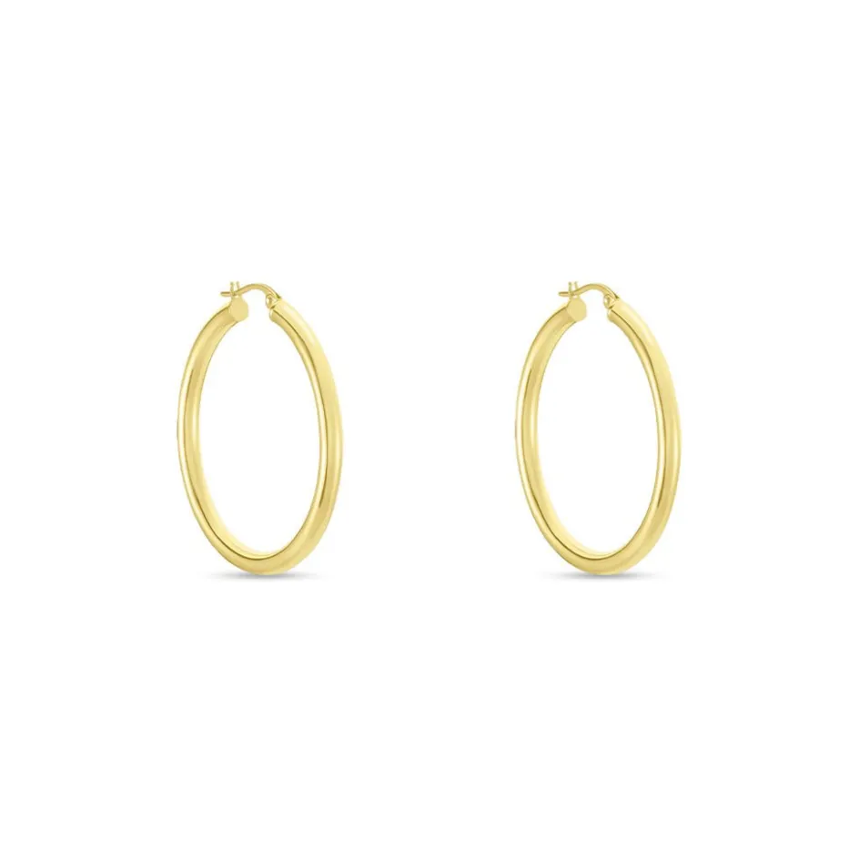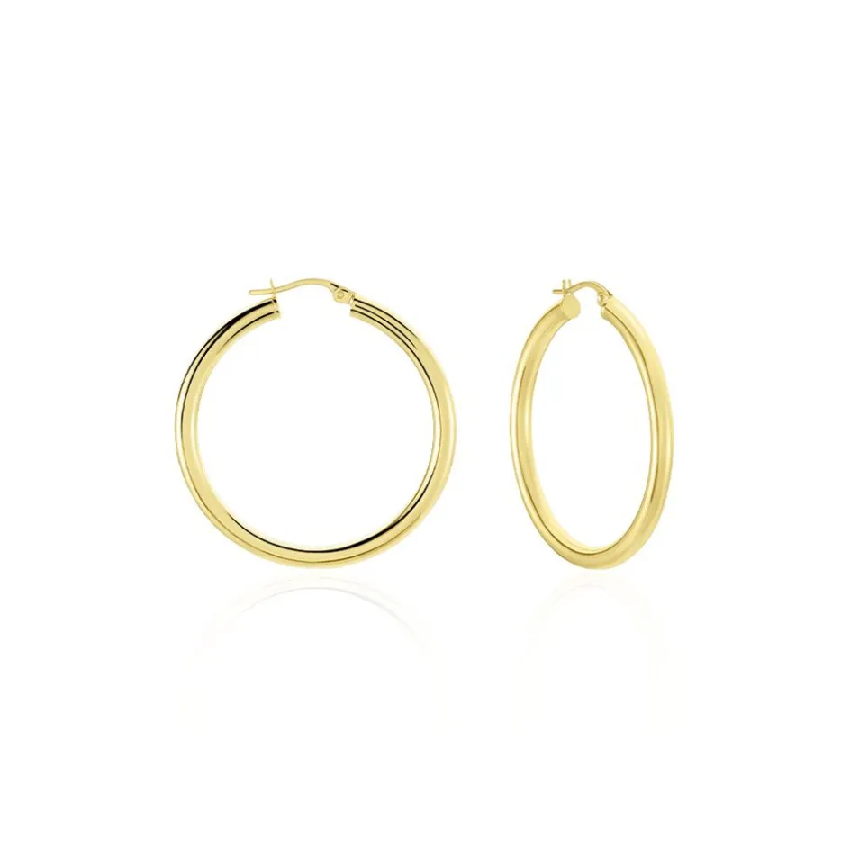 Créoles Or Jaune 375/1000 Fil Rond Lisse Largeur 3mm Diamètre 30mm