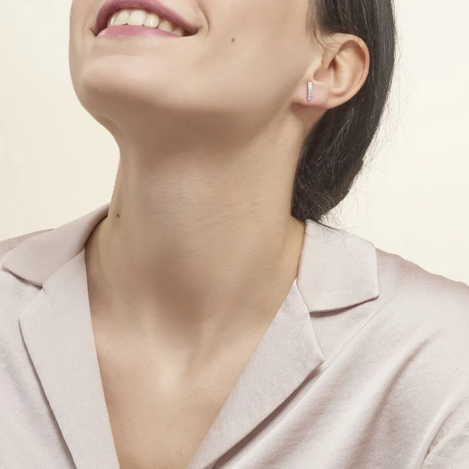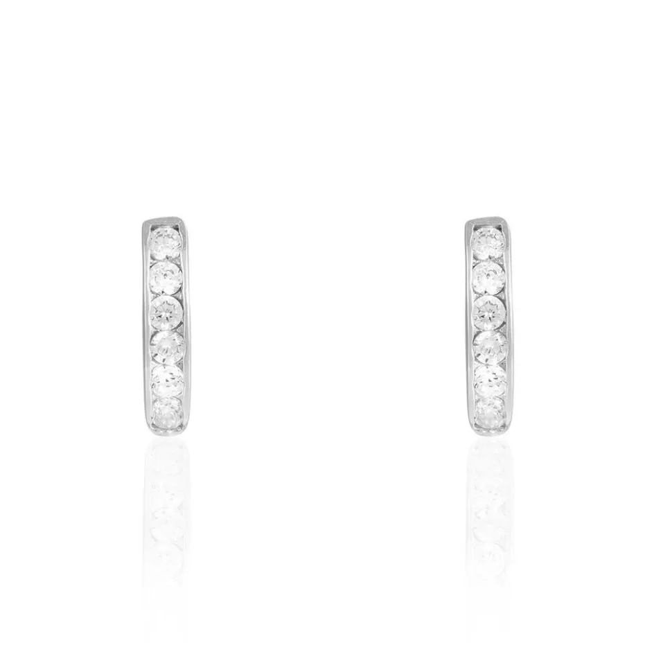 Boucles D’oreilles Demi Creole Argent Blanc 925/1000 Avec Oxydes De Zirconium