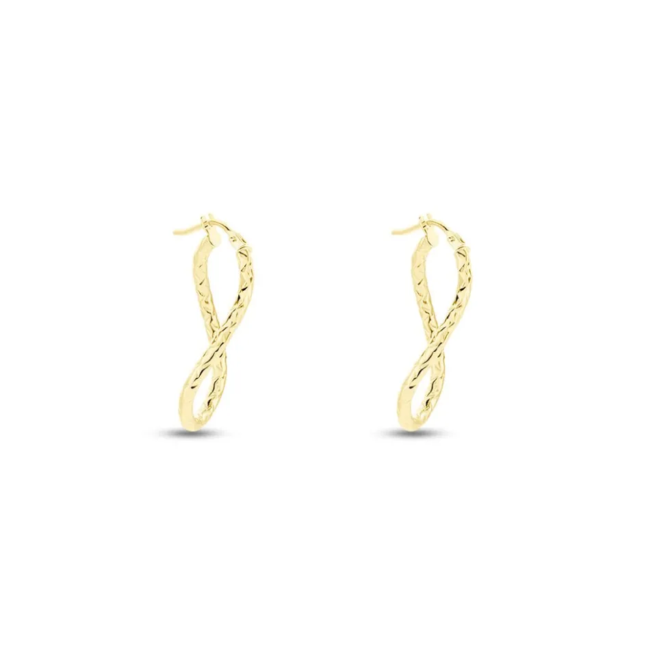 Creoles Or Jaune 375/1000 Ovales Fil Vrille Effet Diamante Largeur 2mm Diametre 30.43mmx17.40mm