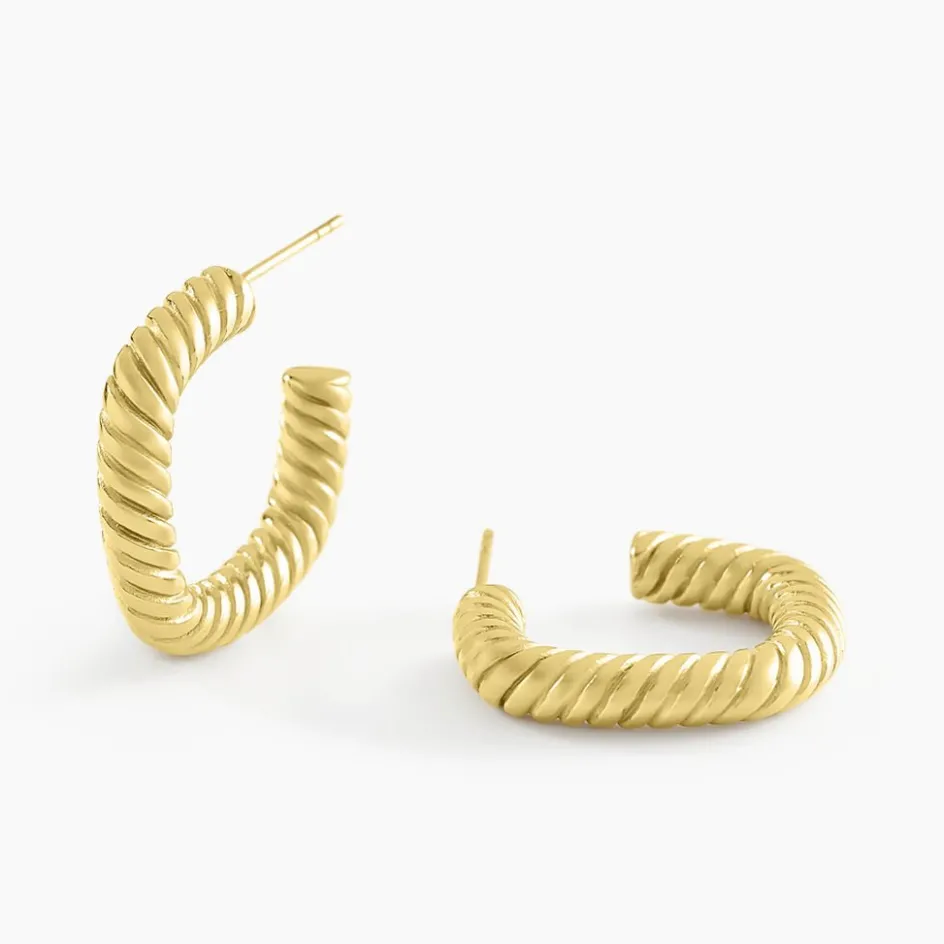 Créoles Acier Inoxydable Jaune Formes Amandes Effet Torsadé Diamètre 15mm