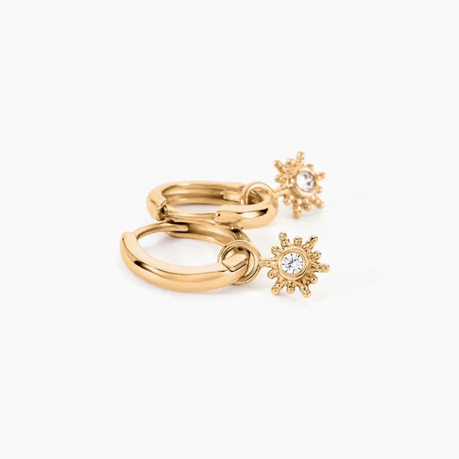 Créoles Plaqué Or Jaune Pampilles Soleil Oxydes De Zirconium Serti Clos Diamètre 12Mm