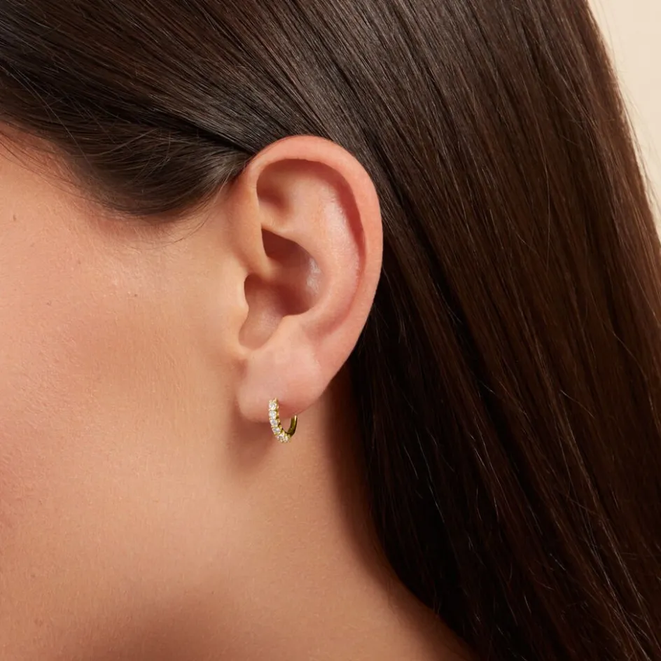 Creoles Or Jaune 375/1000 Diamants Synthetiques Rondes 0.29cts Sertis Griffes Diametre 9mm