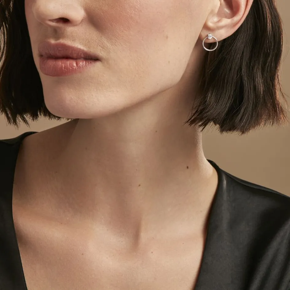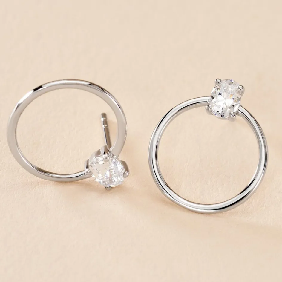 Créoles Or Blanc 375/1000 Ovale Oxydes De Zirconium Serti Griffes
