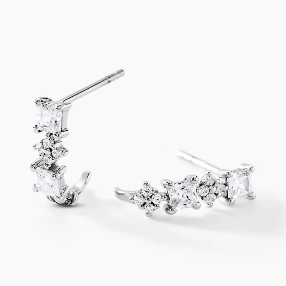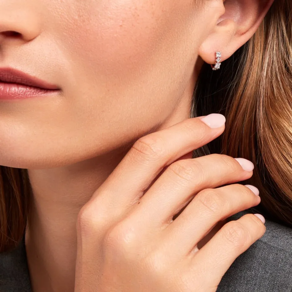 Demi Creoles Or Blanc Motifs Carres Et Losanges Oxydes De Zirconium Serti Griffes 10mm