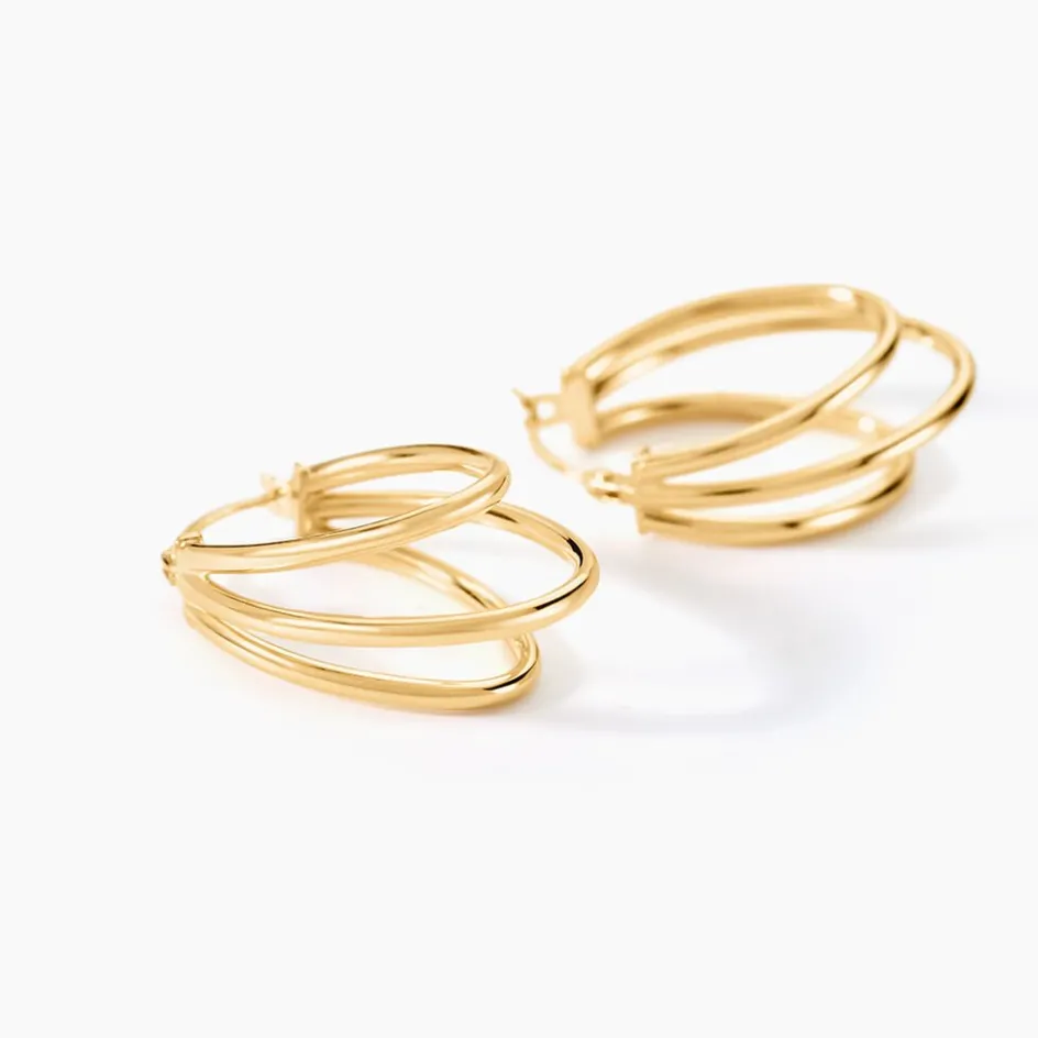 Créoles Or Jaune 375/1000 Ovale Triple Fils Ronds Lisses Longueur 25mm