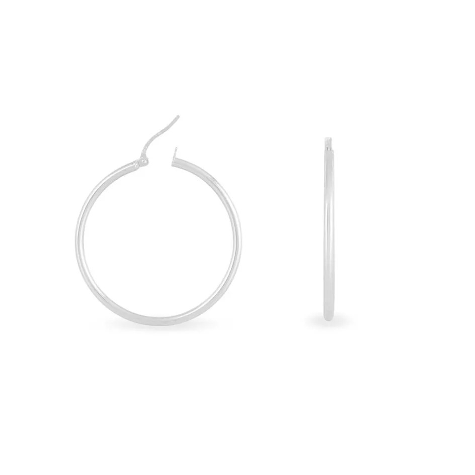 Créoles Or Blanc 375/1000 Fil Rond Lisse Largeur 2mm Diamètre 30mm