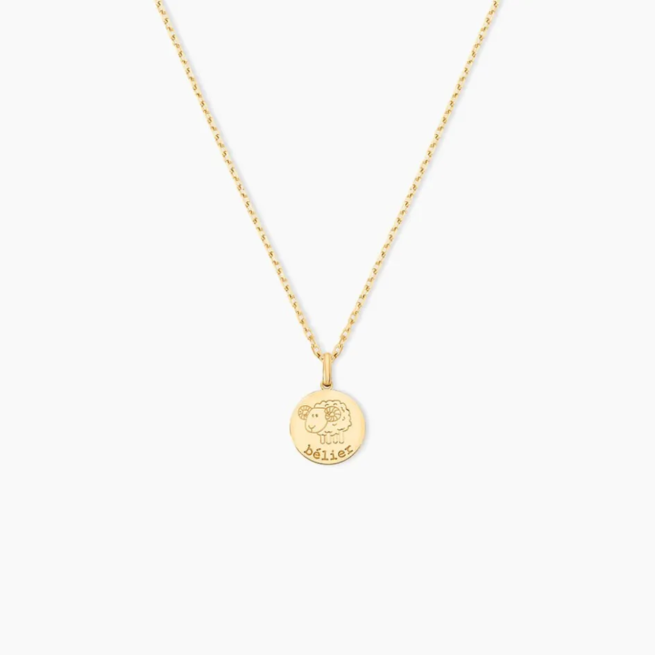 Pendentif Or Jaune 375/1000 Zodiaquemedaille Ronde Signe Belier