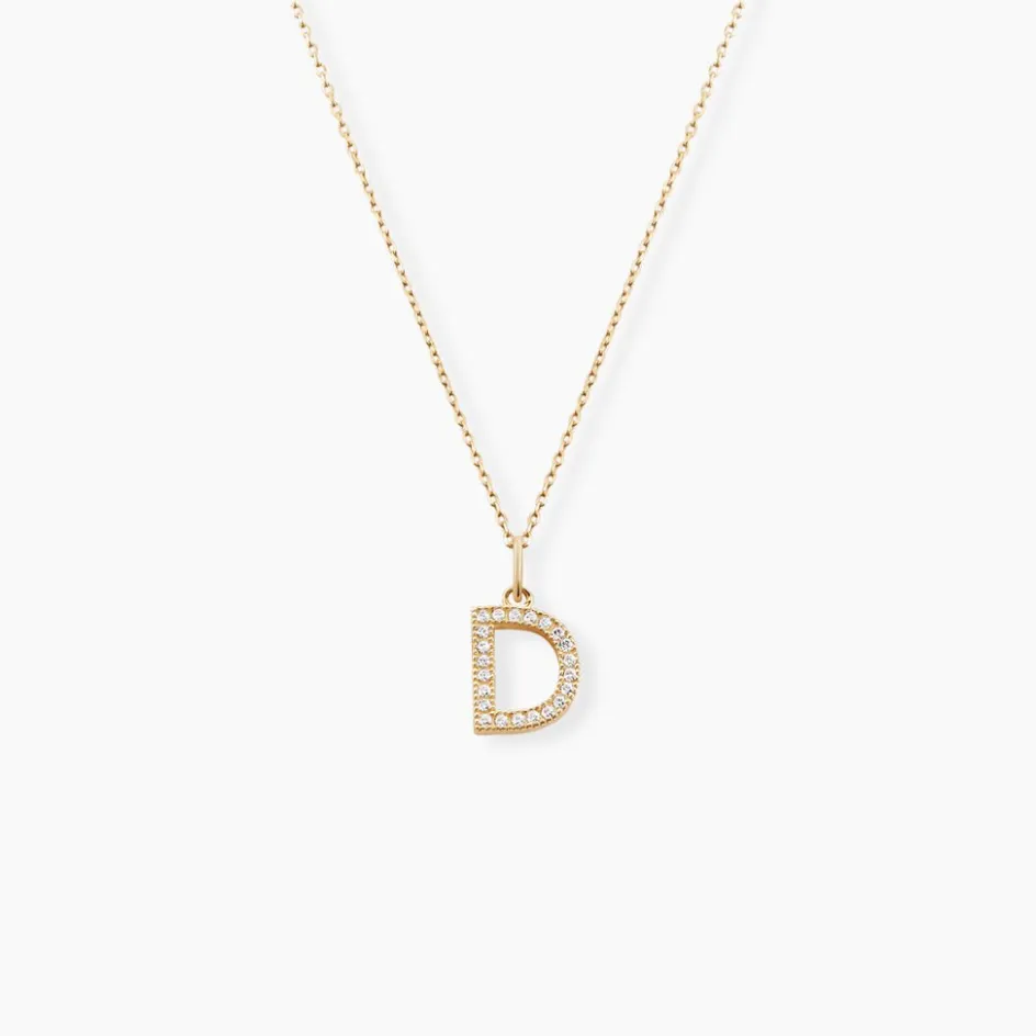Pendentif Or Jaune 375/1000 Lettre D Oxydes De Zirconium