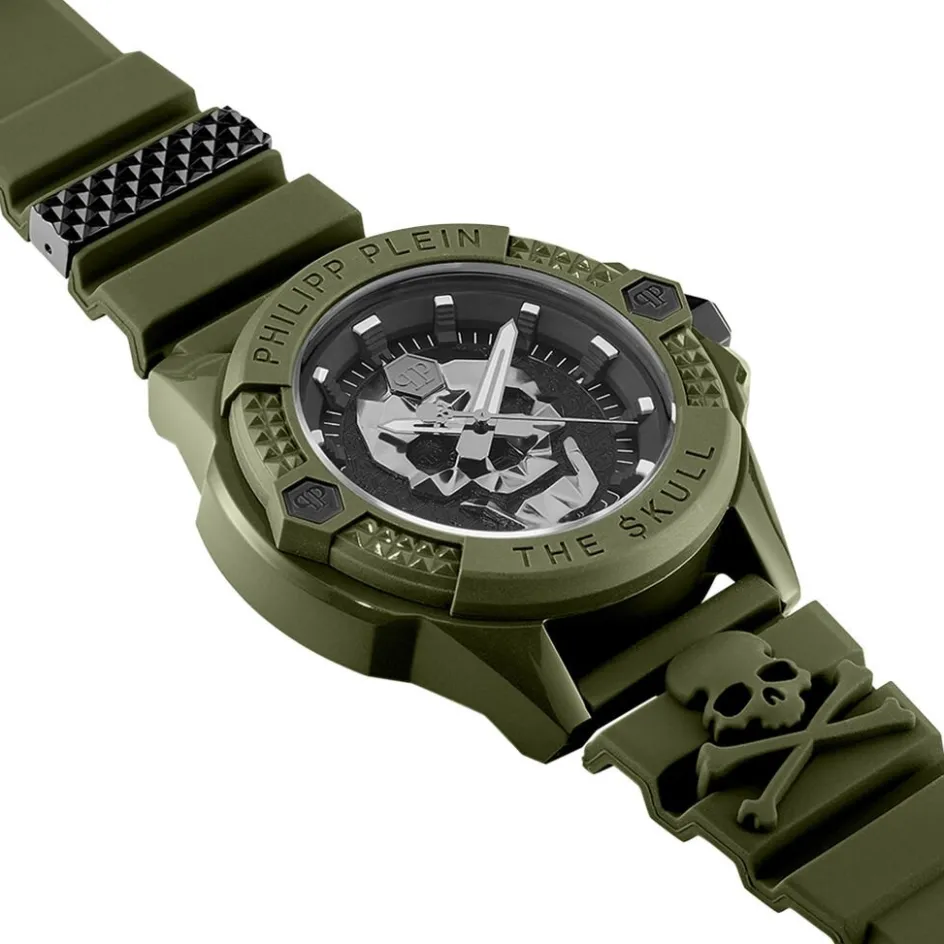Montre Philipp Plein The Skull Ecoceramic Ceramique Vert Rond Quartz 44mm Fond Noir Bracelet Silicone Vert Pwuba0423