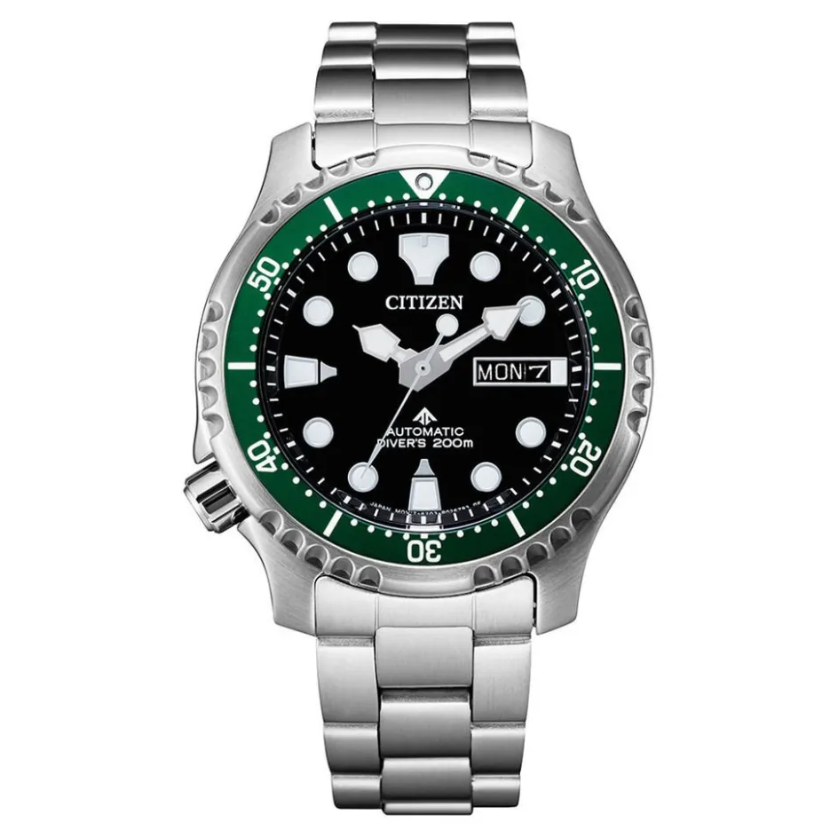 Montre Citizen Promaster Marine Acier Argenté Ronde 42mm Auto Fond Noir Lunette Verte Bracelet Acier Argenté Ny0084-89ee