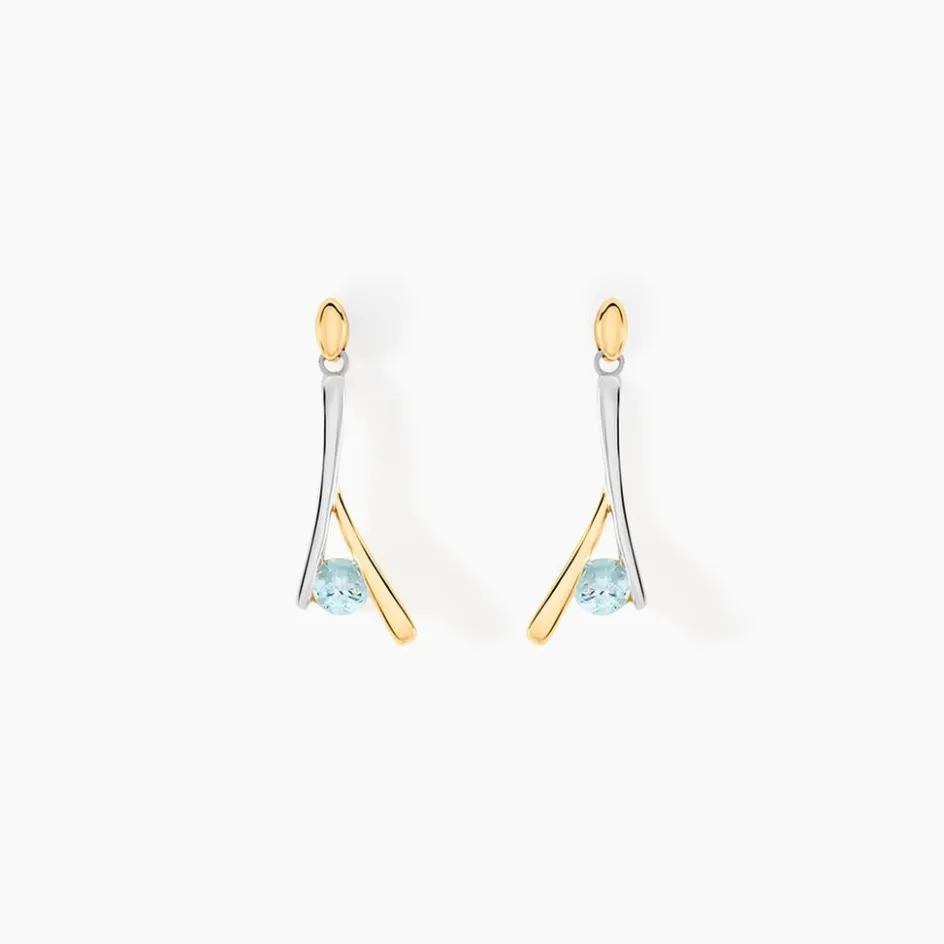 Boucles D’oreilles Pendantes Or Bicolore 375/1000 Topazes Rondes