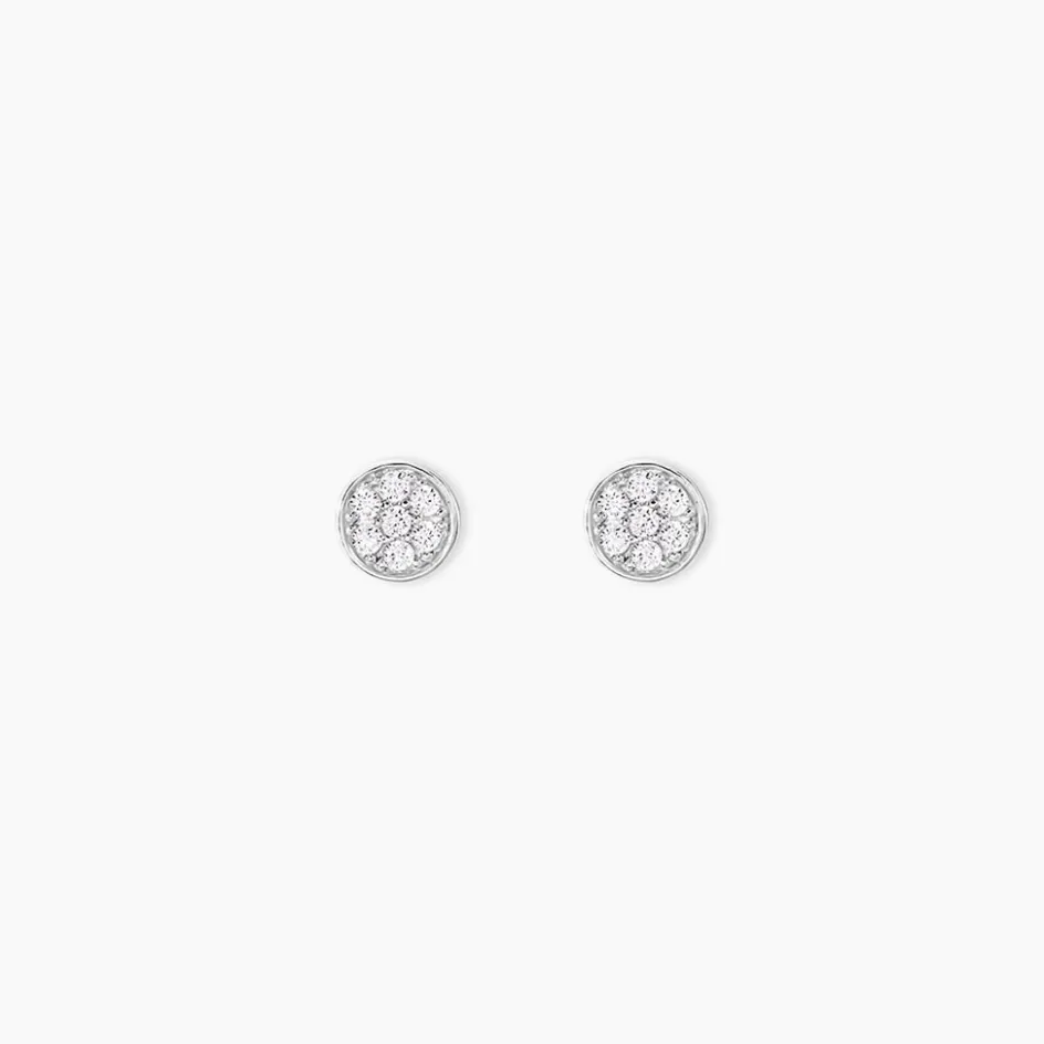 Boucles D’oreilles Or Blanc 375/1000 Puces Formes Pastilles Pavées Oxydes De Zirconium Serti Clos