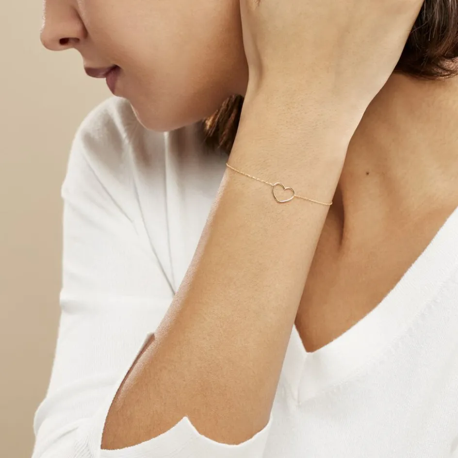 Bracelet Or Jaune 375/1000 Coeur Ajoure Maille Jaseron 18cm