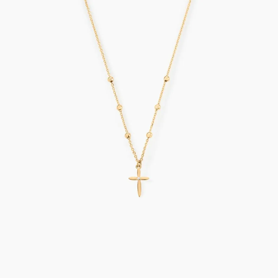 Collier Or Jaune 375/1000 Motif Croix Maille Jaseron 40/42cm