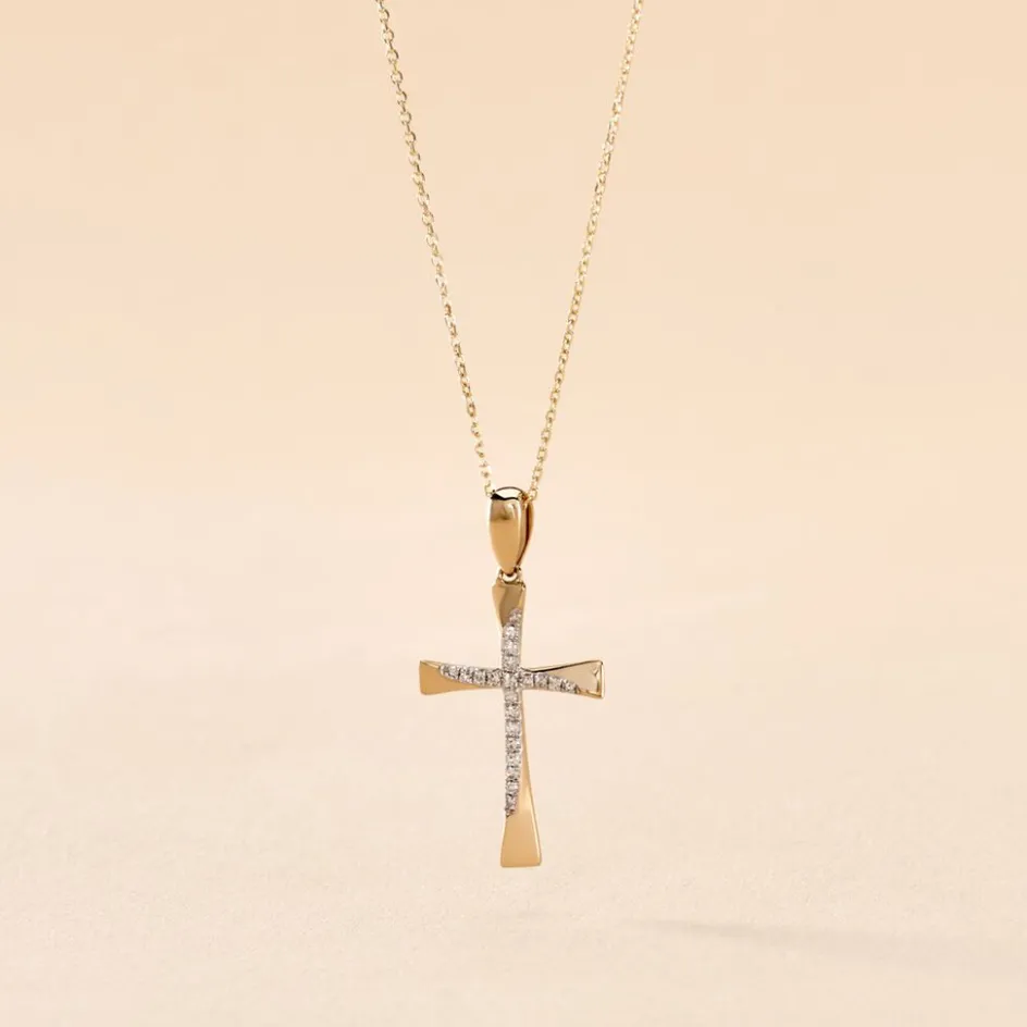 Collier Or Jaune 375/1000 Motif Croix Diamants 42cm