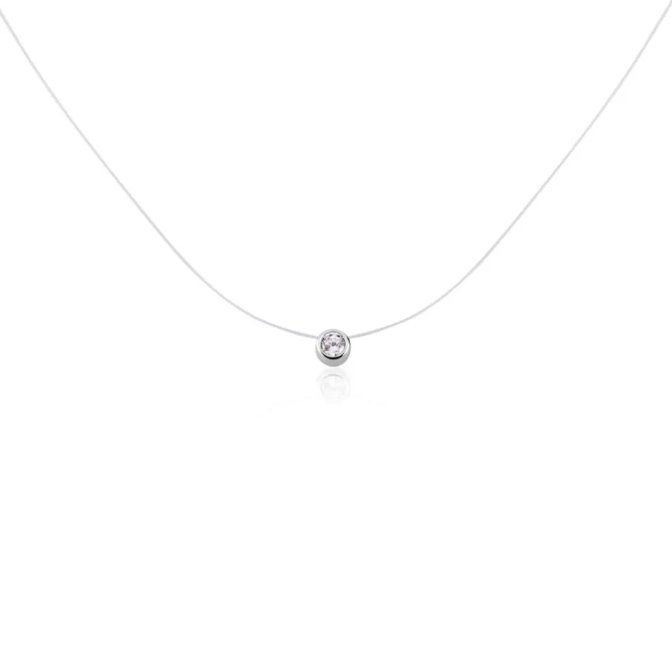 Collier Argent 925/1000 Oxyde De Zirconium Rond Serti Clos 4mm 42cm