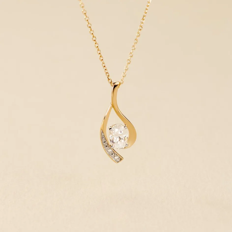 Collier Or Jaune 375/1000 Forme Vrillée Maille Forçat Oxyde De Zirconium Central Ovale Et Oxydes De Zirconium 38+4cm