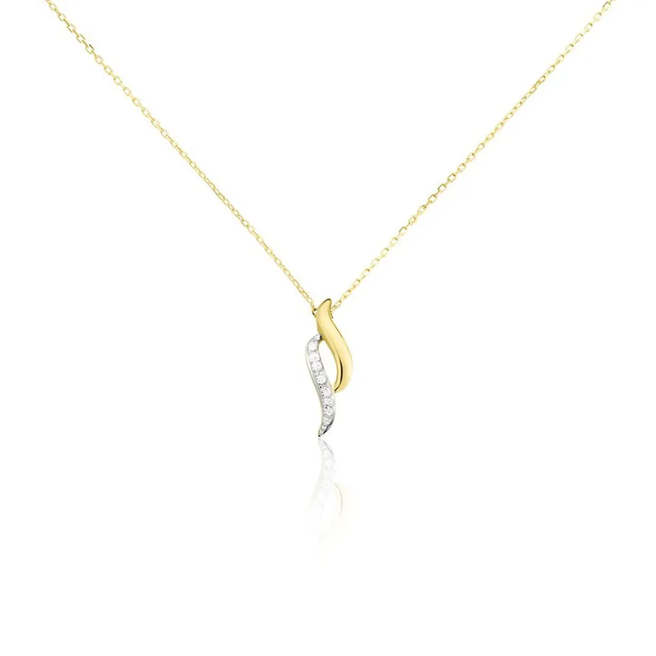 Collier Or Jaune 375/1000 Vague Diamants 0.023cts Micro Serti Maille Forçat Ronde 40+2cm