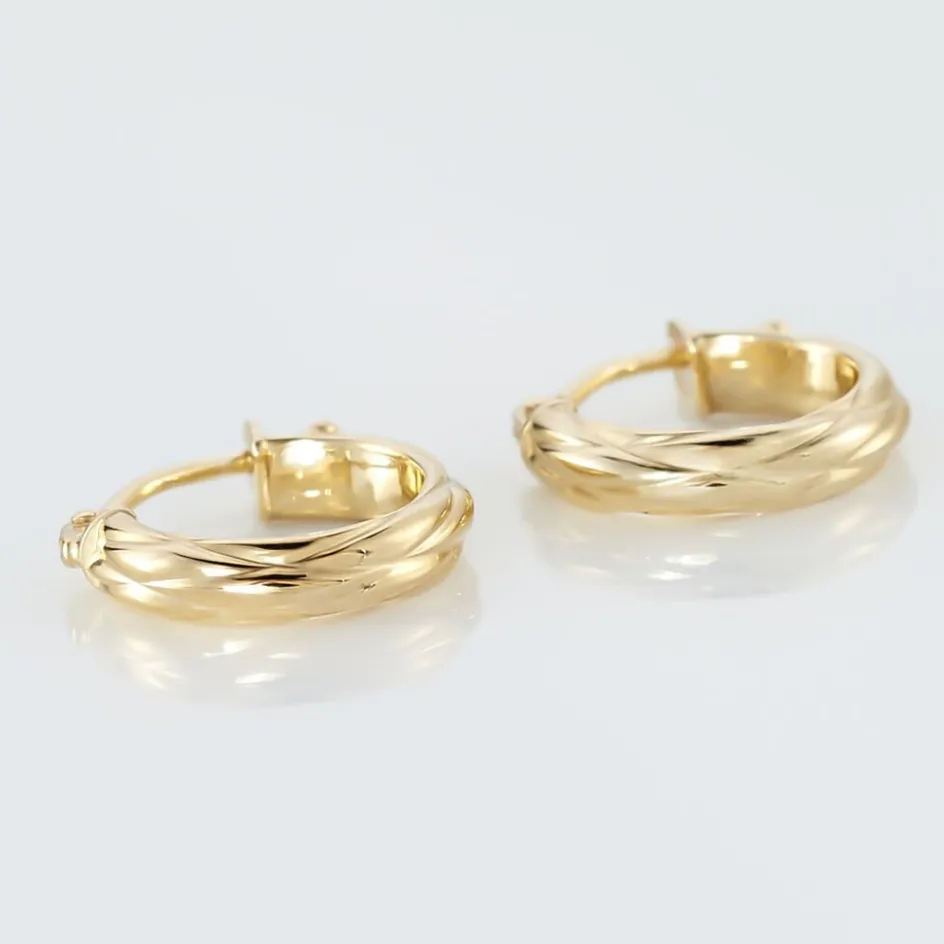 Créoles Or Jaune 375/1000 Fil Demi Jonc Effet Diamanté Largeur 3mm Diamètre 8mm
