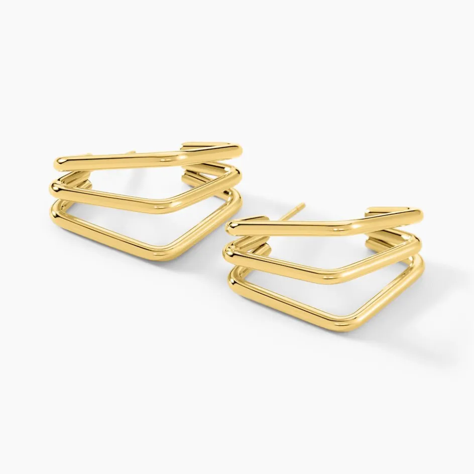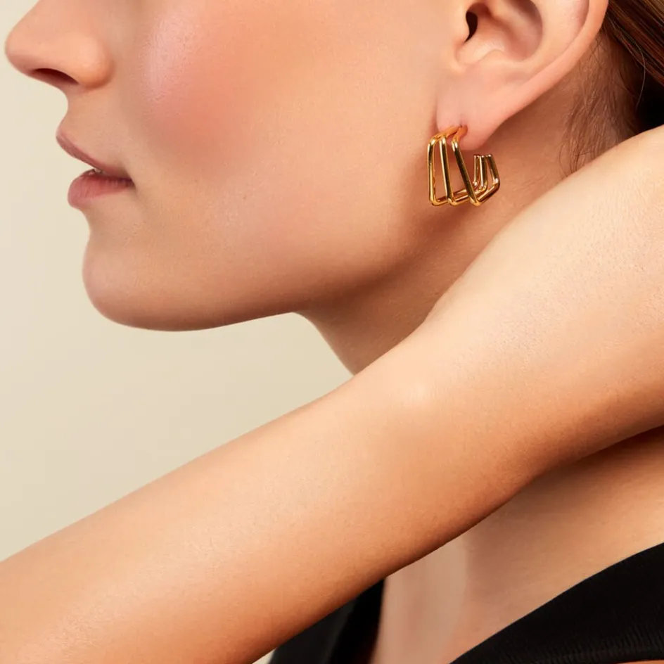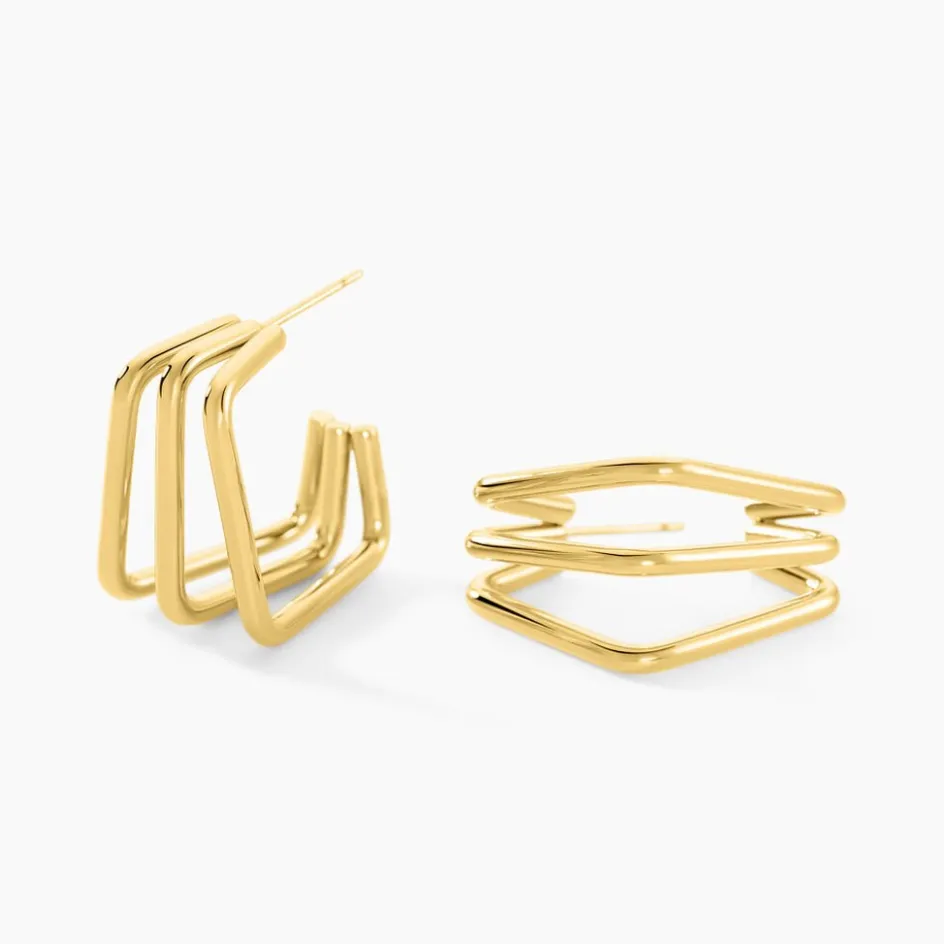 Créoles Acier Inoxydable Jaune Carrées Triple Rang Diamètre 21mm