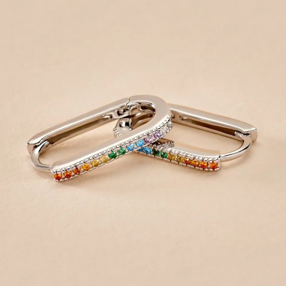 Créoles Rectangulaires Argent Blanc 925/1000 Oxydes De Zirconium Multicolore 18mm