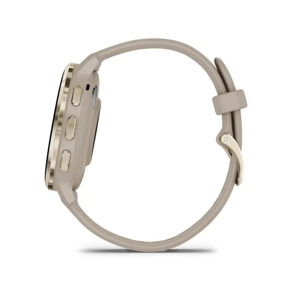 Montre Garmin Venu 3 Polymere Renforce De Fibres Beige Ronde Connectee Multifonctions 41mm Lunette Acier Dore Fond Noir Bracelet Silicone Beige 010-02785-02