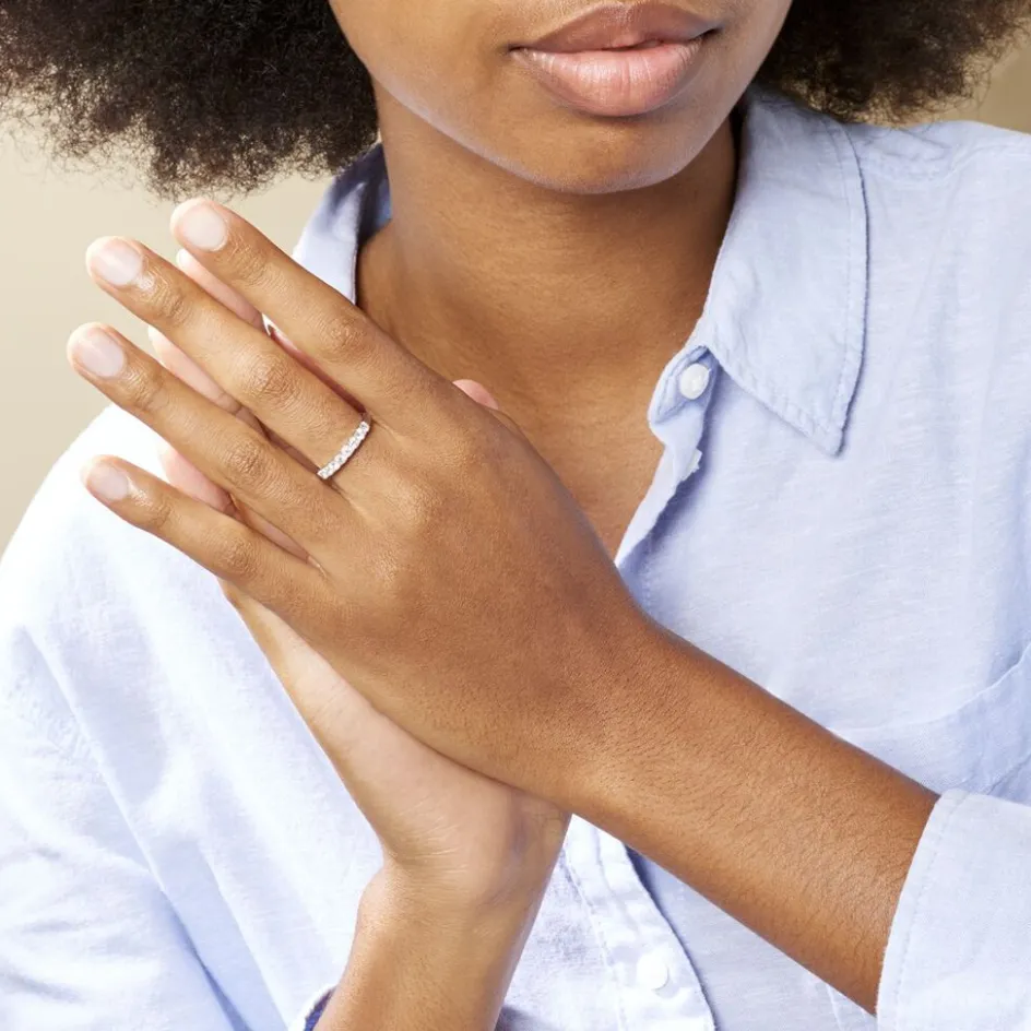Demi-alliance Or Blanc 750/1000 Diamants 0.576cts Sertis Griffes