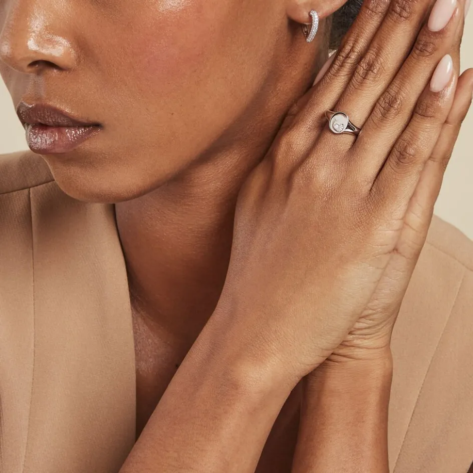 Bague Argent Blanc 925/1000 Plateau Rond Motif C艙ur Pavage Oxydes De Zirconium