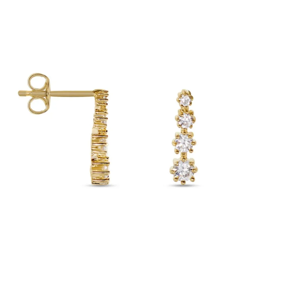 Boucles D’oreilles Pendantes Plaque Or Jaune Rivieres Serties Griffes Oxydes De Zirconium