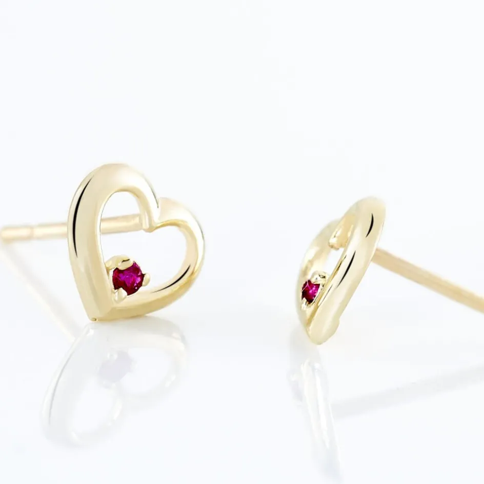 Boucles D’oreilles Or Jaune 375/1000 C艙urs Et Rubis