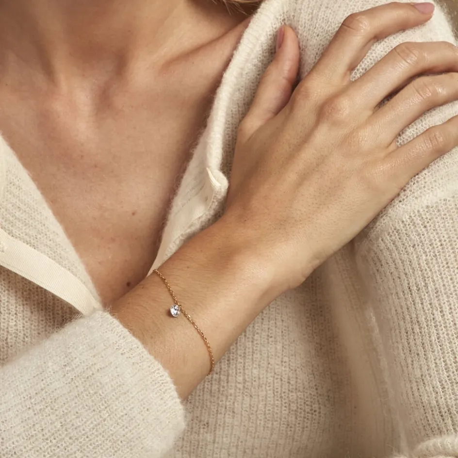 Bracelet Plaqué Or Jaune Oxyde De Zirconium Percé Maille Forçat 19cm