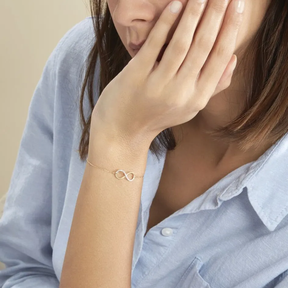 Bracelet Ajustable Or Jaune 375/1000 Forme Infini Avec Un Cote Pave Diamants